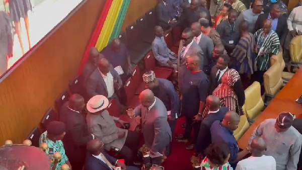 While members of the minority side cheered Mr. Mahama on, their counterparts on the majority side in parliament chanted, “pensioner”, “pensioner”.
