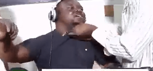 He was captured in the video stream holding the broadcaster by the neck in an attempt to drag him out of the studio.